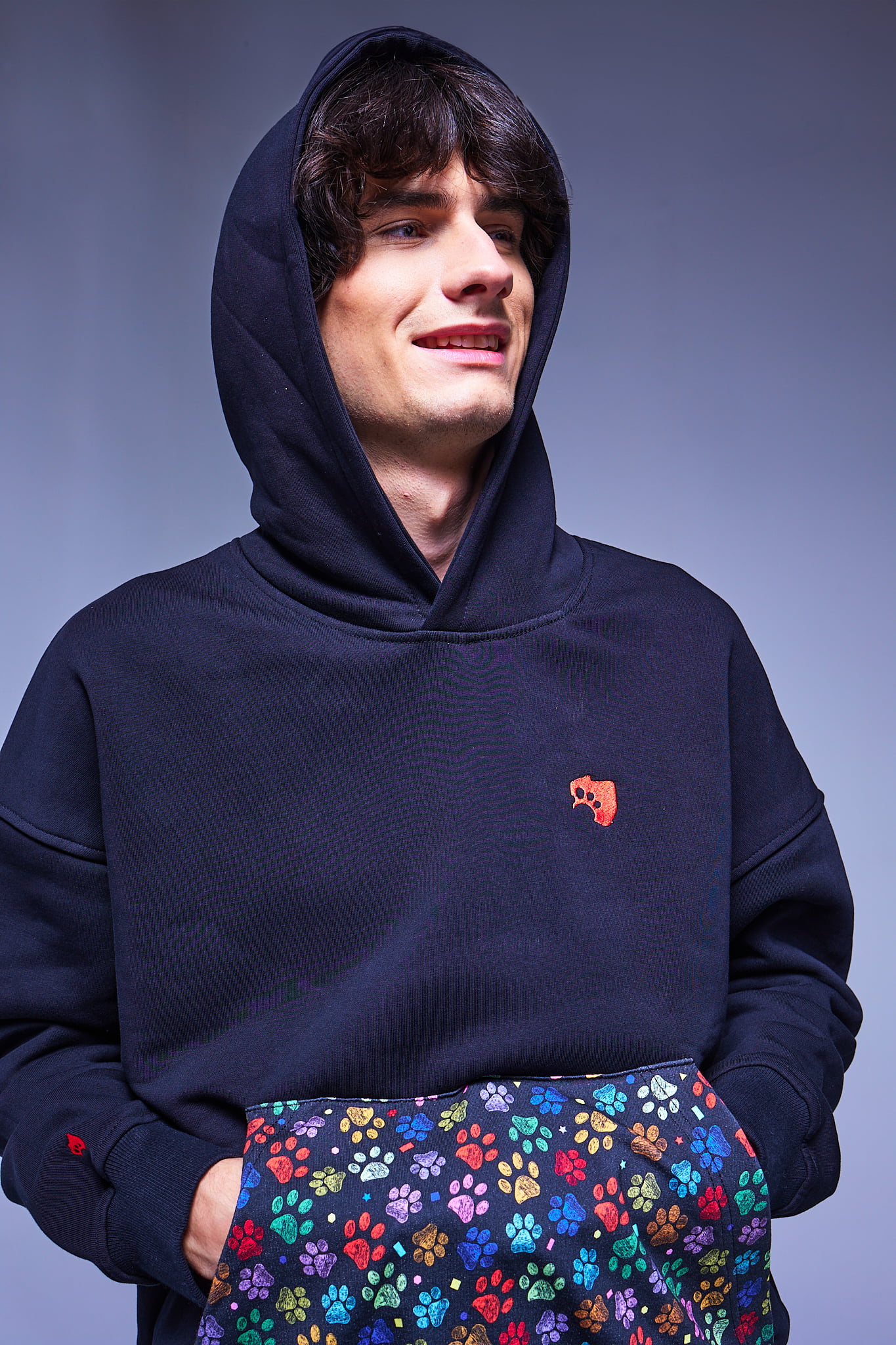 Nasze bluzy zostały stworzone z myślą o Was – prawdziwych miłośnikach zwierząt. Bluzy są starannie wykonane, z ciepłej, dobrej jakości bawełny. Produkt posiada niesamowicie komfortowy, przy czym również funkcjonalny, kaptur, a także kieszeń typu kangur. Modna bluza idealnie sprawdzi podczas spacerów ze zwierzakami. Designerska bluza, na swojej kieszeni, posiada niebywale oryginalną grafikę przedstawiającą psie łapki. Nasze logo w kolorze czerwonym zostało wyhaftowane na rękawie, pod kapturem, a także z przodu po lewej stronie.